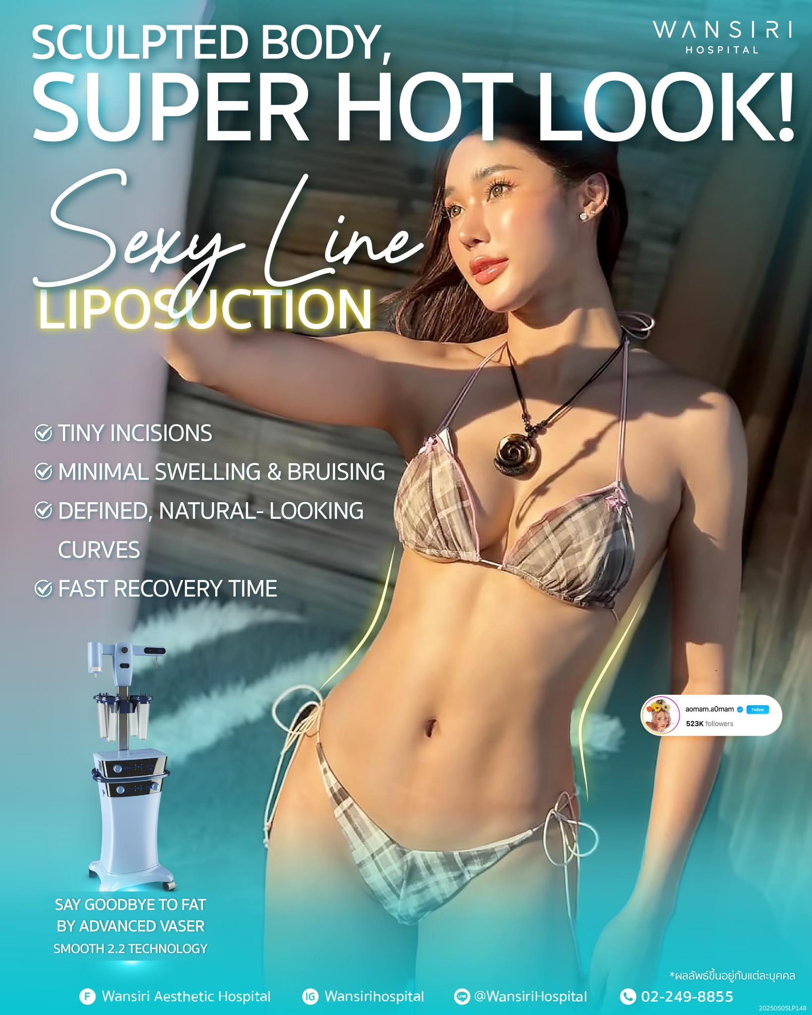 At Wansiri Hospital, we use the VASER device, recognized for its high efficiency in fat removal.