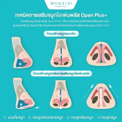 การเสริมจมูกโอเพ่นพลัส Open Plus+ เป็นตัวเลือกที่ดีสำหรับผู้ที่ต้องการปรับโครงสร้างจมูกอย่างละเอียด โดยเทคนิคนี้ให้ผลลัพธ์ที่แม่นยำและดูเป็นธรรมชาติ อย่างไรก็ตาม ควรพิจารณาข้อดีและข้อเสีย รวมถึงเลือกศัลยแพทย์ที่เชี่ยวชาญเพื่อให้การผ่าตัดประสบความสำเร็จและปลอดภัยที่สุด